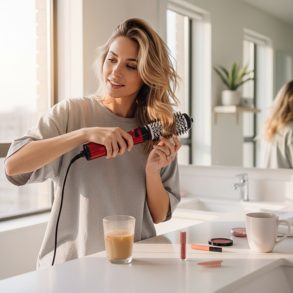 Unlike traditional round brushes, this one combines even heat distribution, volume-building airflow, and a lightweight, travel-friendly design — all in one tool. No bulky dryer. No extra attachments. Just smooth, frizz-free volume that actually lasts.